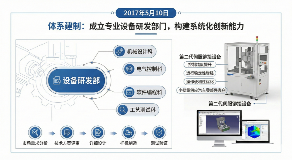 Under this new organizational system, we established standardized product development processes and project management mechanisms. From market demand analysis, technical solution review, detailed design, prototype manufacturing to testing and verification, clear work standards and deliverables were defined for each stage. At the same time, we introduced advanced 3D design software and simulation analysis tools, significantly improving design efficiency and quality. That year, the R&D department successfully completed the development of the second-generation servo riveting equipment, which showed significant improvements in control accuracy, operational stability, and ease of use, and began supplying small batches to customers in the automotive parts industry.